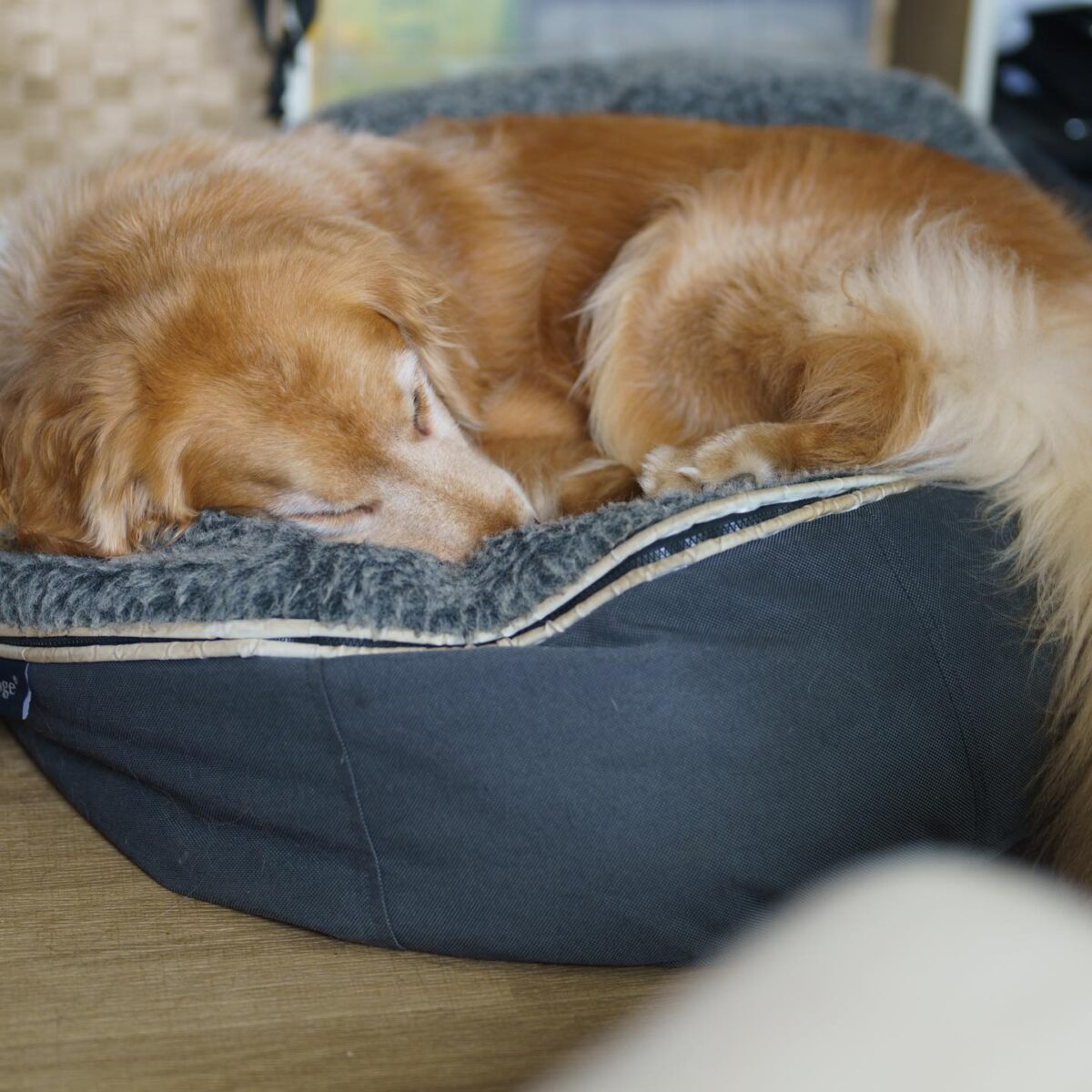 昨日はノアちゃんが寝てた #ambientlounge のドッグベッド。今日はマッキーが丸くなって寝てる。かわりばんこだね。L サイズならふたり一緒に寝るかな?寝ないか-。